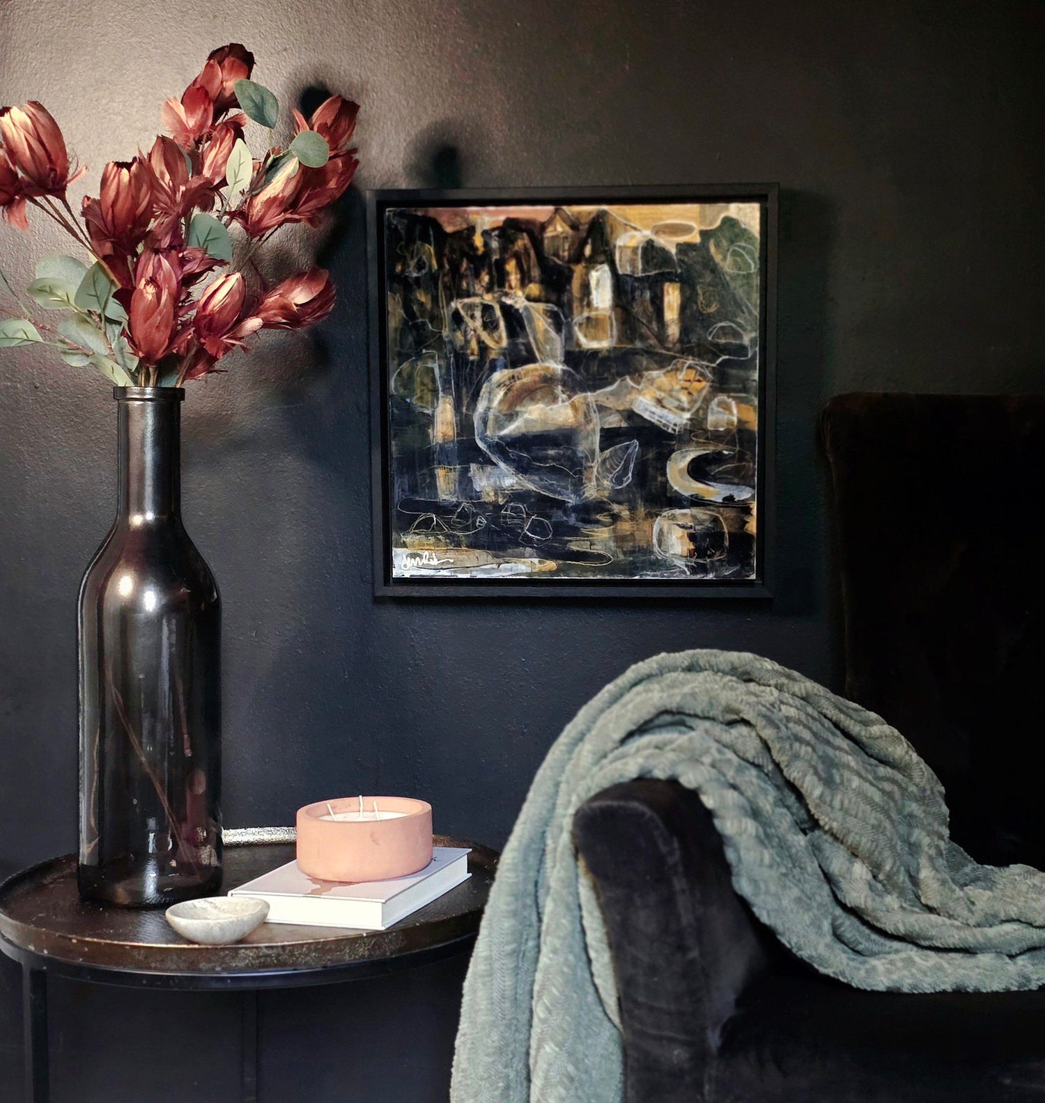 Cool, dark blues and purples with pops of contrast - these deep and dramatic paintings, drawings or prints are ideal for interiors seeking to create an atmosphere of calm contemplation.