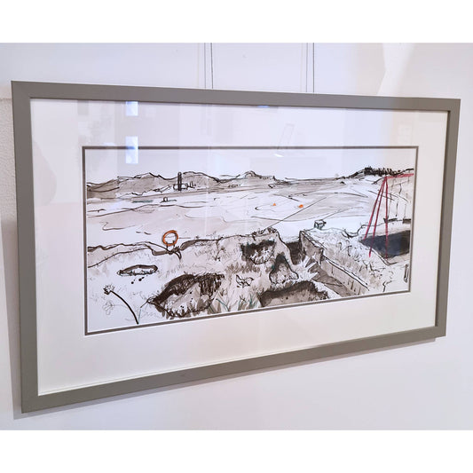 Ballyholme Swings - Original Indian Ink Drawing, Framed