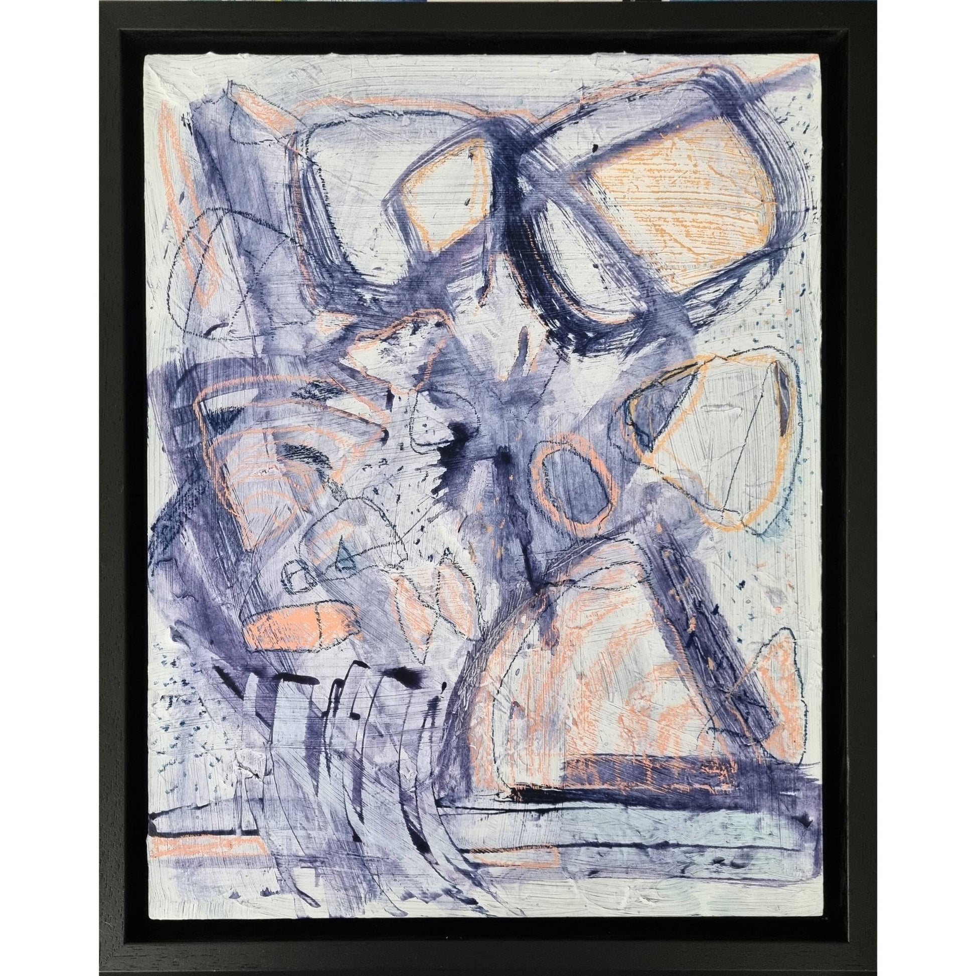 Wanting to do more with the lilac and apricot colours that had featured in the previous painting, I decided to do a really free, abstract, playful decorative piece inspired by my abstract monoline sketches of the shapes that emerge when you really look down at a shale/pebble beach.