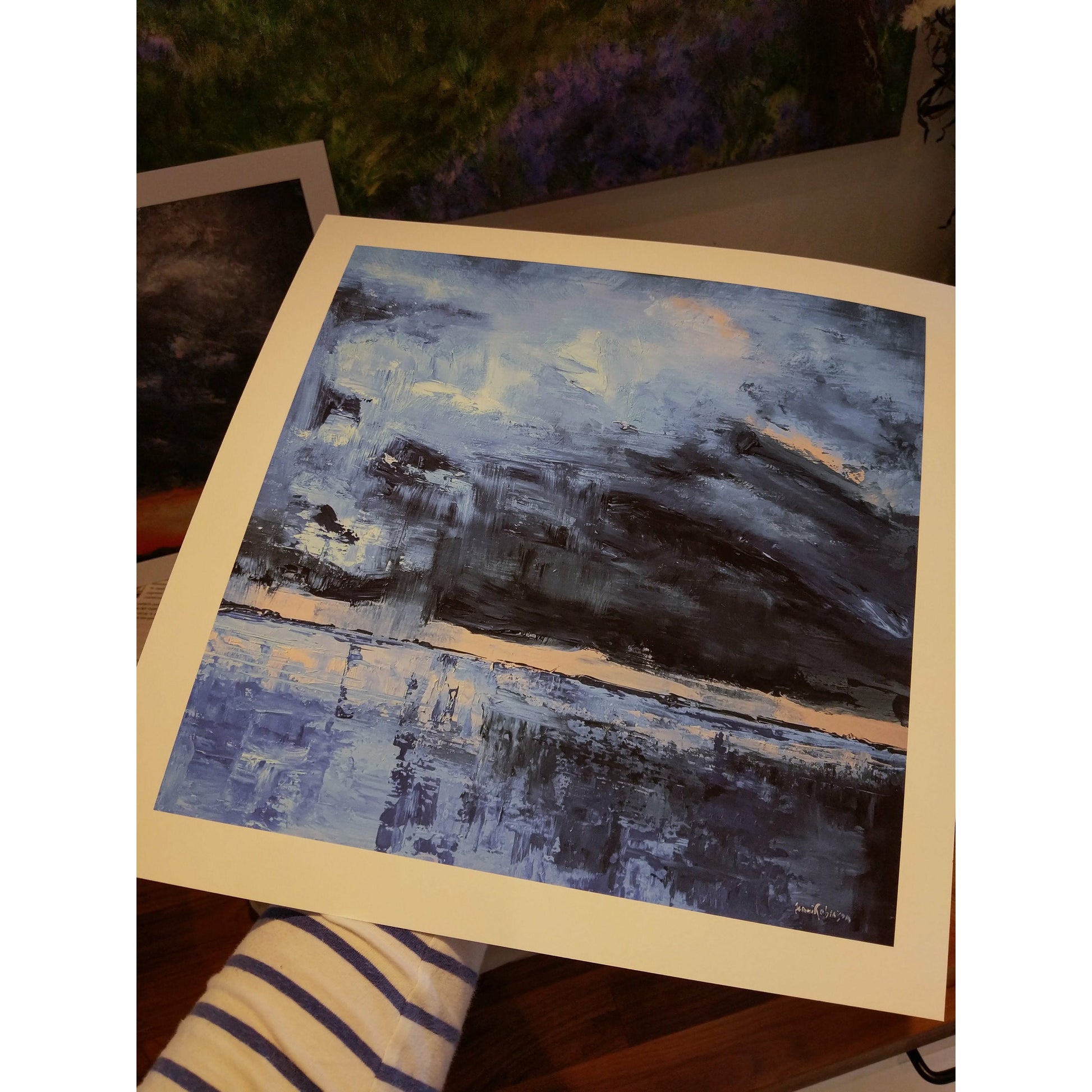 Gloaming is a giclee print made in the image of my original acrylic painting (original acrylic on aluminium, see originals in shop). Image size is 16", but the total size is 24" including mount so that is the size of frame you'd be looking for. Local framing quotes are available (BT23) however this item can not be shipped framed. Please note that due to the print package including a rigid mount, these prints are shipped flat.